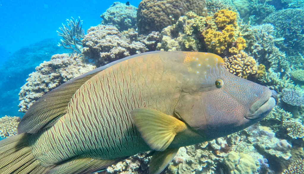 少し潜ったところで、なんとナポレオンフィッシュがお出迎えしてくれました!