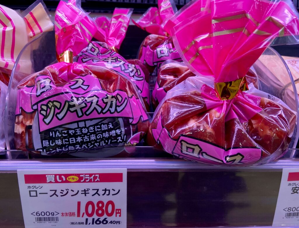 早速発見!特製ソースに付け込まれたジンギスカンです。やはり北海道の食卓には欠かせないよう。